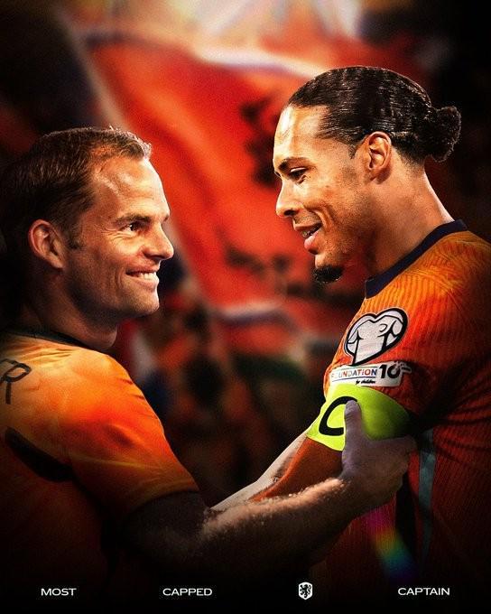 在荷兰对阵立陶宛的比赛中,荷兰队官方账号发布了一段特别视频,其中前主帅弗兰克·德波尔向范戴克表示祝贺。范戴克本场比赛第72次佩戴队长袖标,正式打破德波尔此前的队史队长出场记录。周五,范戴克已经追平了德波尔的纪录,现在他又超越了它。他在2018年春天首次戴上队长袖标,今天对阵立陶宛的比赛是他为荷兰队出战的第88场比赛,其中72场比赛他担任队长。比赛期间,荷兰队官方社交媒体首先发布了德波尔将队长袖标递给范迪克的插画,随后又发布了德波尔录制的视频。视频中,德波尔对范戴克说道:“嘿,维吉尔,恭喜你打破了我的纪录,这是作为荷兰队队长出场次数最多的纪录。你戴队长袖标的次数高达72次,这真是太棒了。”这是一项值得您真正感到自豪的成就。你是一位真正的领袖,希望你以后能作为队长取得更好的时刻。”【咪咕独家观看英超】
